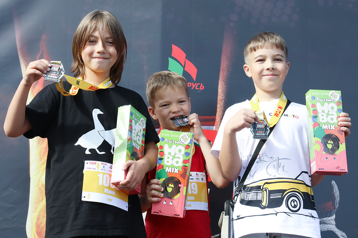 Первыми на дистанцию в 1 километр вступили дети. В конце забега их ждали медали и вкусные угощения от спонсоров мероприятия: натуральные фруктовые конфеты «ХОБА» и высокобелковый кисломолочный напиток «EXPONENTA».