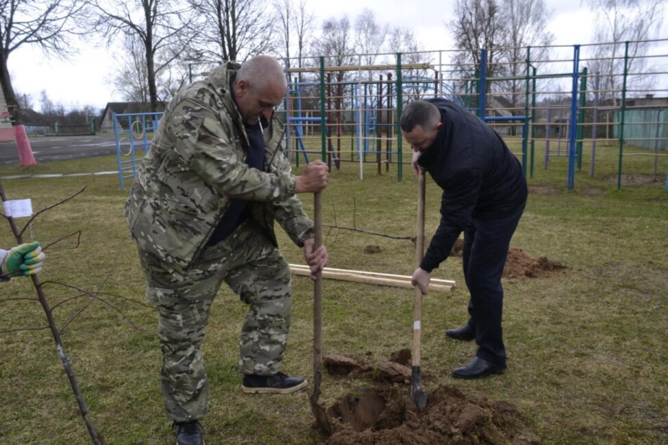 Подарили и помогли в посадке вишневого и яблоневого сада шефы: представители ОАО «Молочные Горки» Александр Ривкин, ОАО «Маслаки» Дмитрий Буров, председатель Маслаковского сельисполкома Виктор Сойкин, а также жители агрогородка.