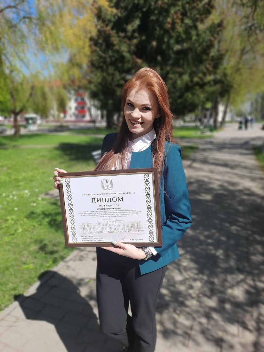 В Могилеве на празднике Первомая студентке БГСХА Яне Довбенко вручили диплом лауреата специальной премии облисполкома