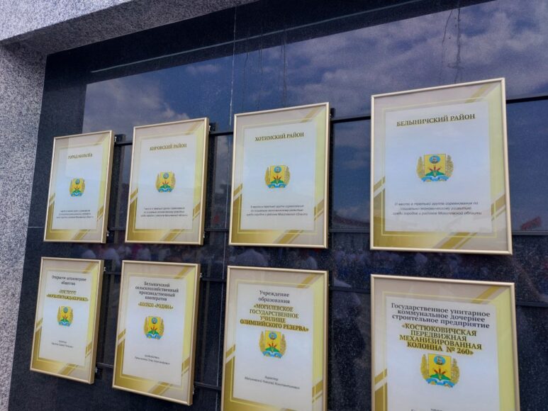 Золотом на солнце переливаются таблички с наименованиями организаций и предприятий Могилевской области, достигших наилучших показателей в своей деятельности за 2024 год.