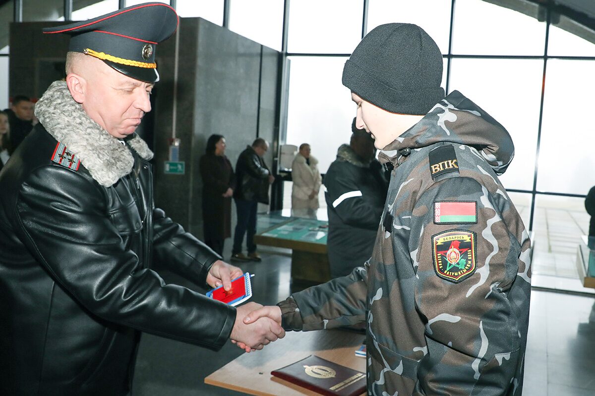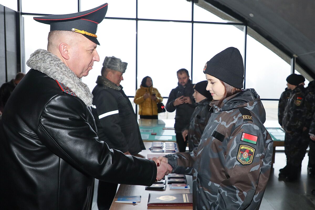 Начальник РОВД Михаил Ермалович и председатель ветеранской организации РОВД Валерий Харкевич вручили удостоверения воспитанники клуба.