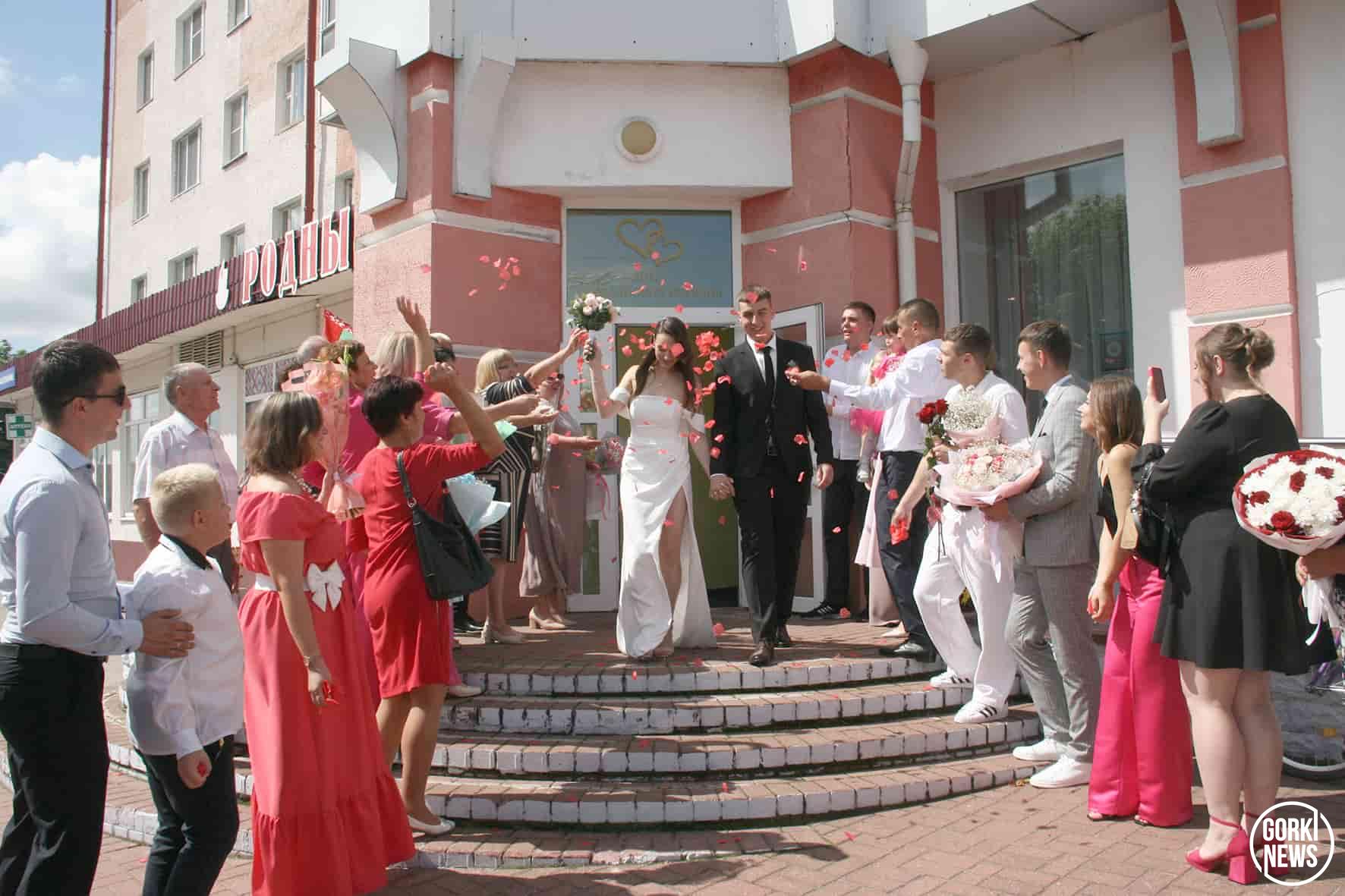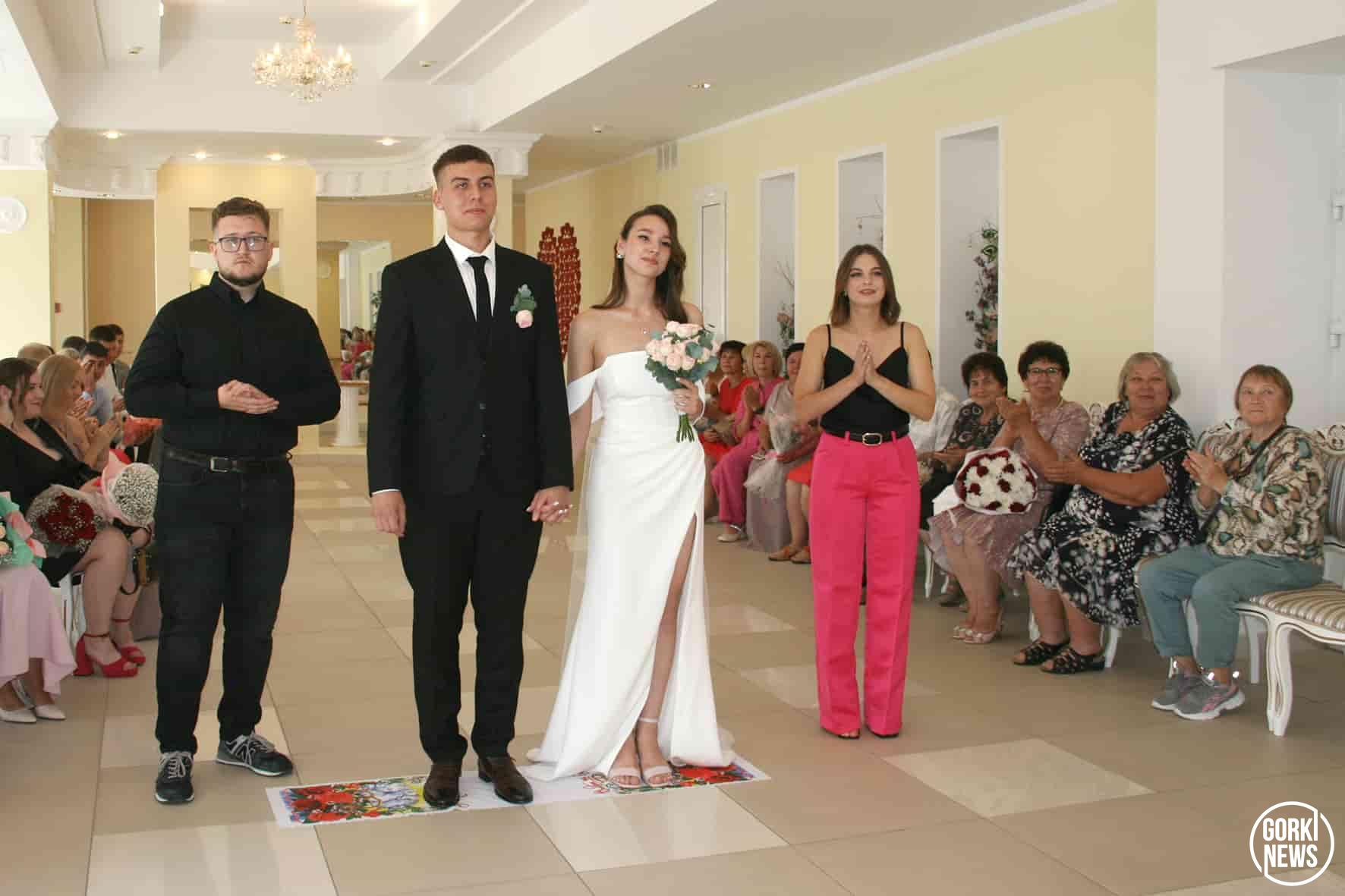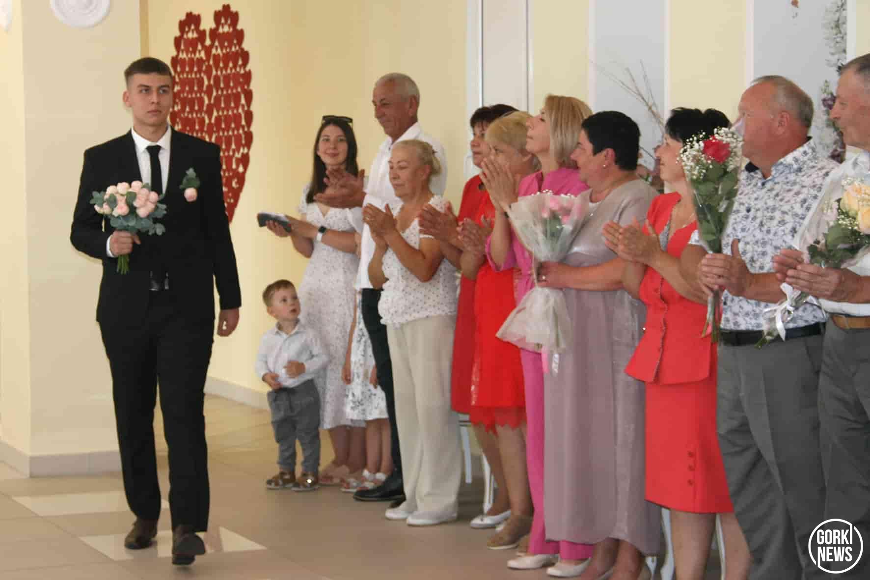 Юбилейная свадьба прошла сегодня в отделе ЗАГС райисполкома. Это сотая новая молодая семья в Горецком районе. Молодоженами стали Ярослав Кабашов и Ксения Цыркунова