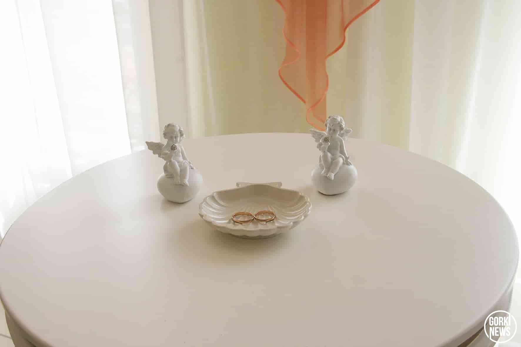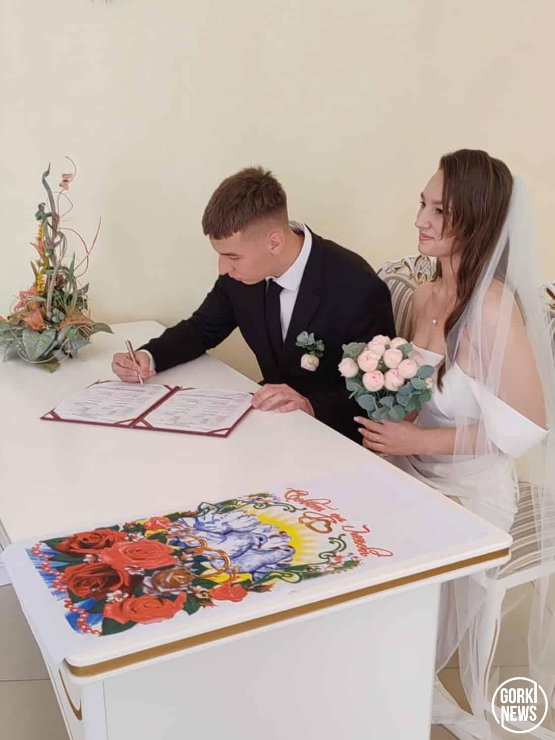 Церемонию провела начальник отдела ЗАГС Горецкого райисполкома Наталья Мелехова. Она поздравила пару и вручила не только свидетельство о заключении брака, а также подарок в виде рамки для оформления фотографий и изображений.