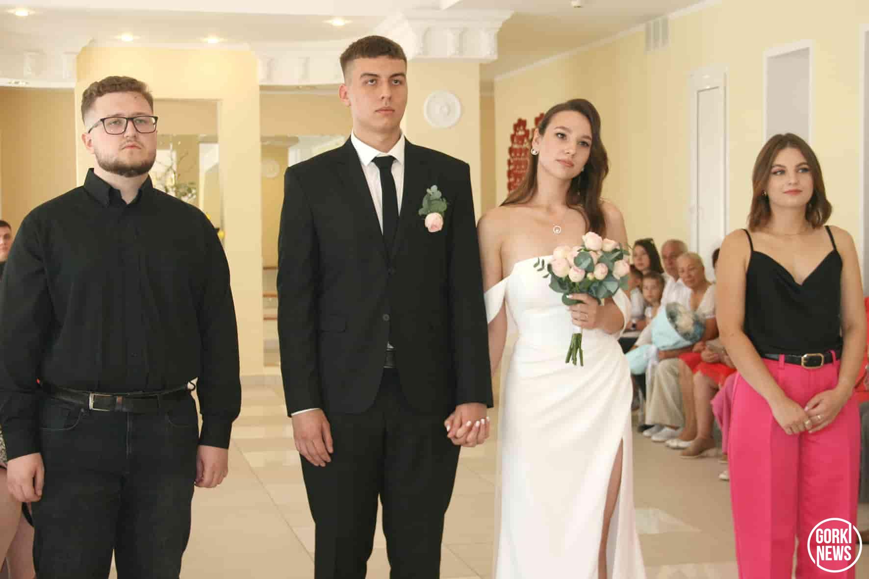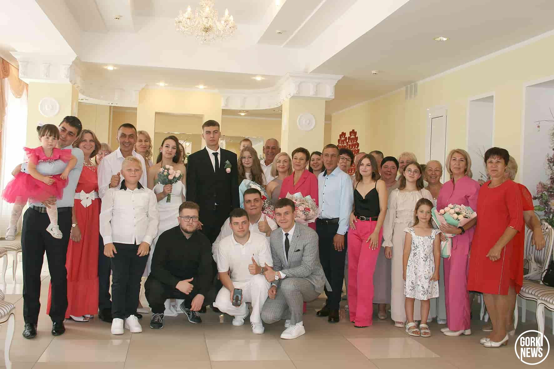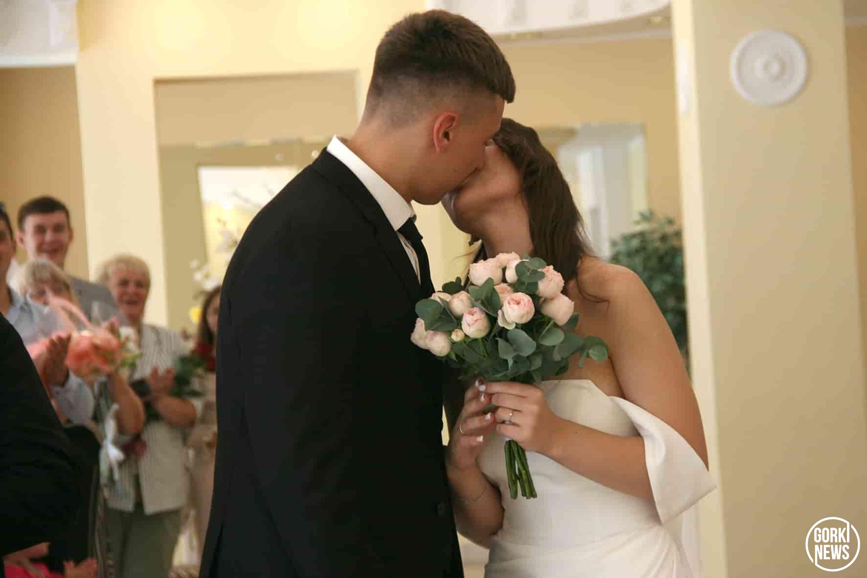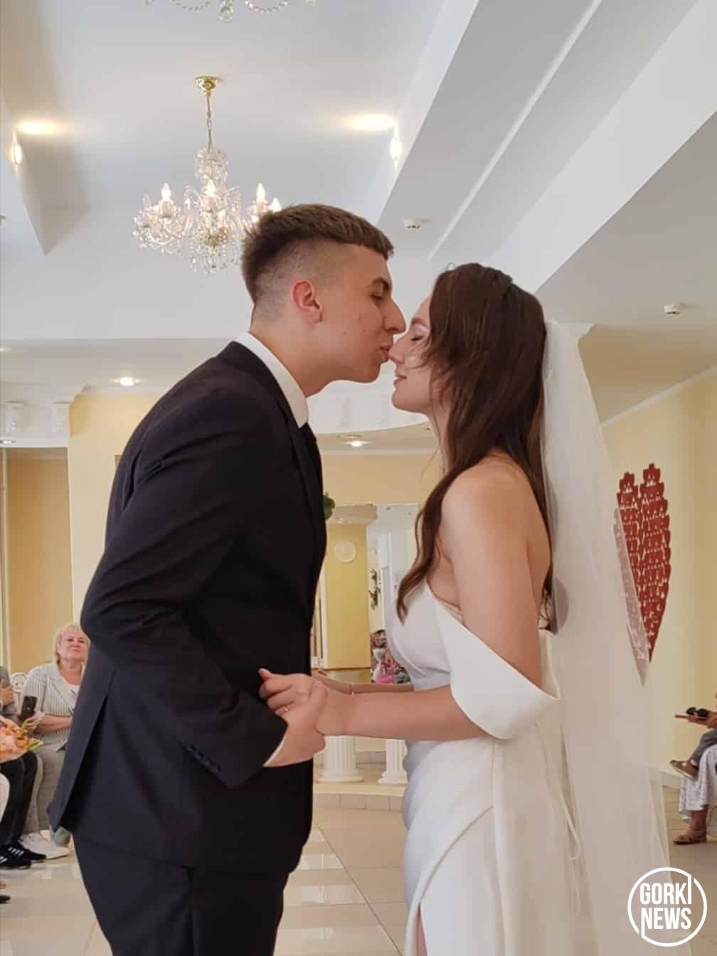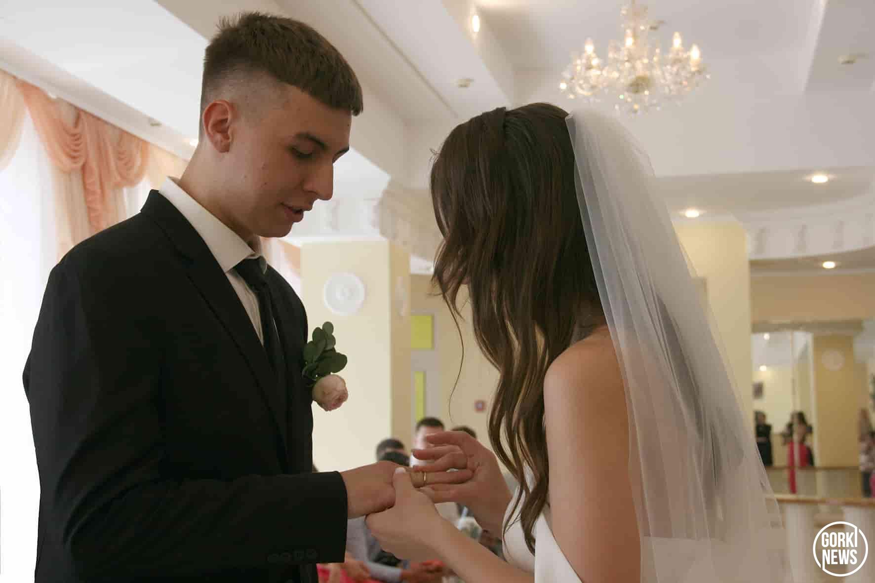 Юбилейная свадьба прошла сегодня в отделе ЗАГС райисполкома. Это сотая новая молодая семья в Горецком районе. Молодоженами стали Ярослав Кабашов и Ксения Цыркунова