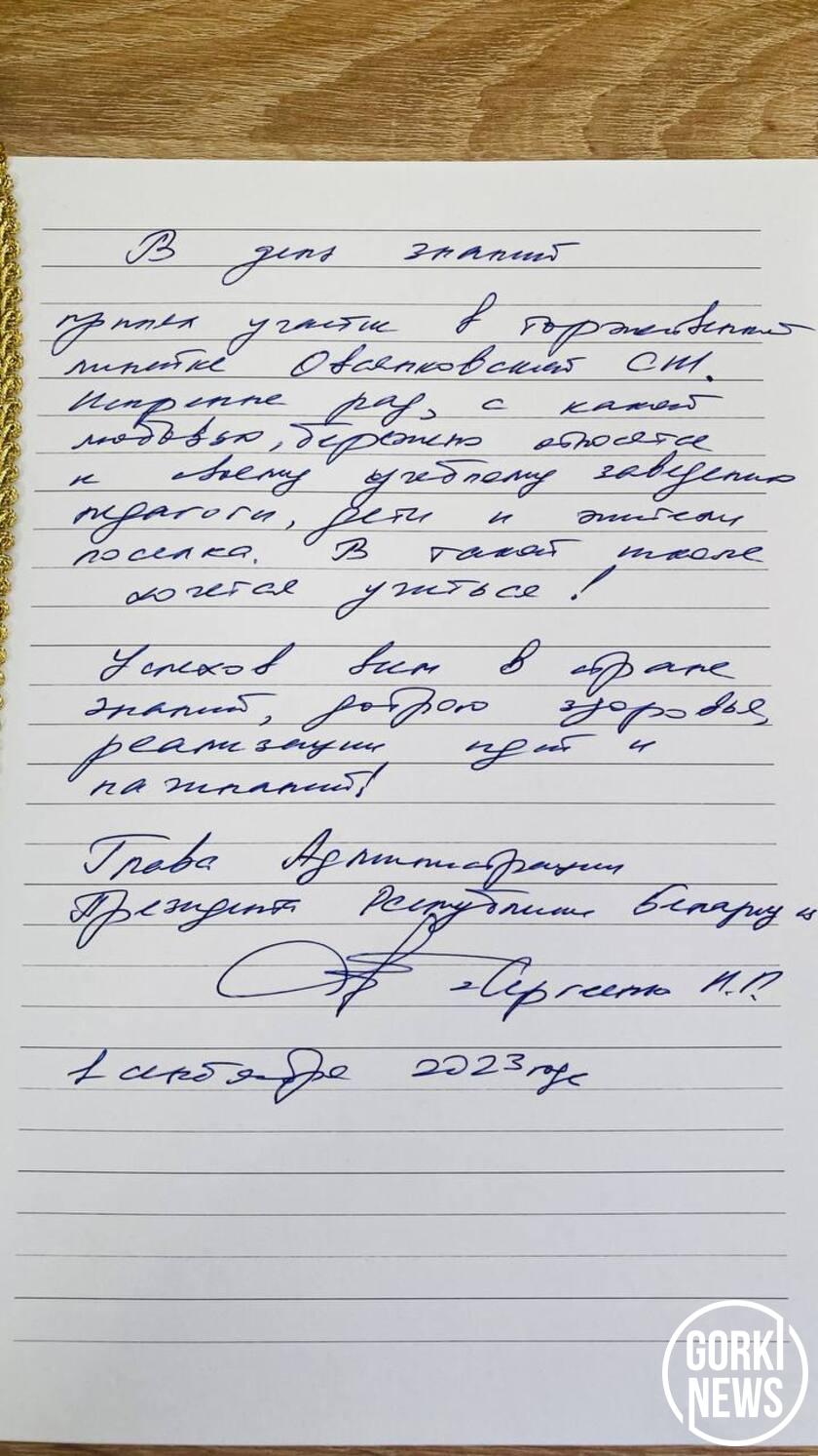 После торжественной линейки Игорь Сергеенко и другие гости ознакомились с материально-технической базой сельского учреждения образования. Игорь Петрович сделал запись в Книге почетных гостей школы.