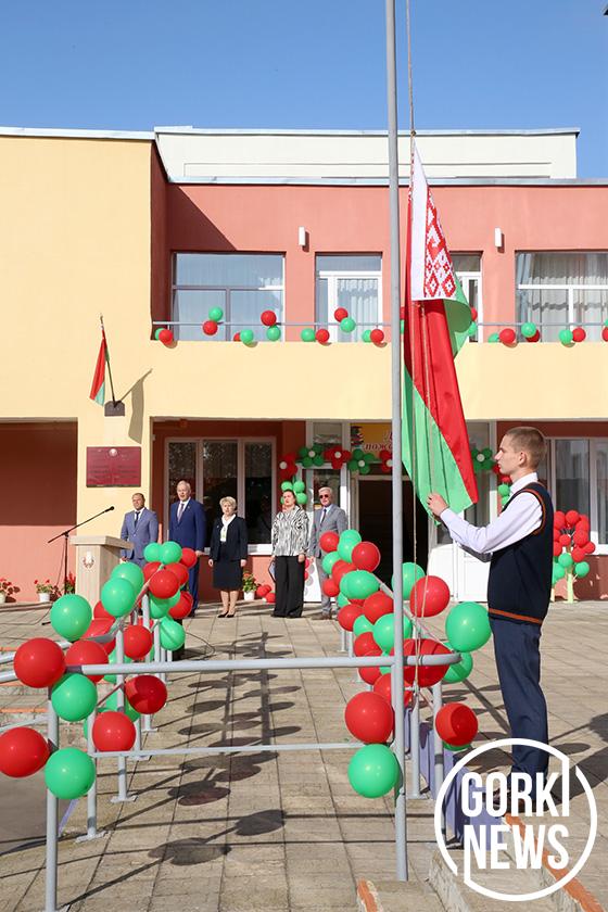 Поднятие Государственного флага Республики Беларусь, исполнение Государственного гимна — эти торжественные моменты прививают школьникам чувства гордости за страну и уважения к ее символам. Право поднять Государственный флаг было предоставлено лучшему учащемуся школы Егору Митренкову.