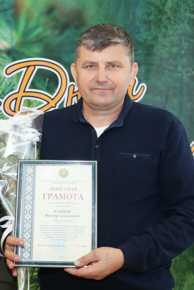 Почетной грамоты Министерства лесного хозяйства удостоен вальщик леса Добрянского лесничества Василий Рябцев (на заглавном фото), Грамоты Министерства – водитель Алексей Блохин, Благодарности председателя Могилевского облисполкома – электромонтер Борис Дроздов, Диплома областного соревнования за выполнение показателей социально-экономического развития отрасли – коллектив деревообрабатывающего цеха, начальник Михаил Якубовский.