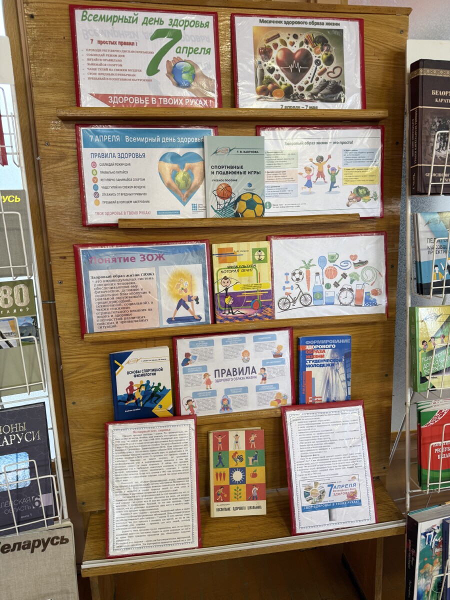 В библиотеке колледжа оформили тематическую выставку «7 апреля – Всемирный день здоровья». Были представлены информационные плакаты и книги с полезной информацией о важности сохранения и укрепления здоровья. Цель выставки ‒ привлечь внимание учащихся и педагогов к теме здоровья и здорового образа жизни.