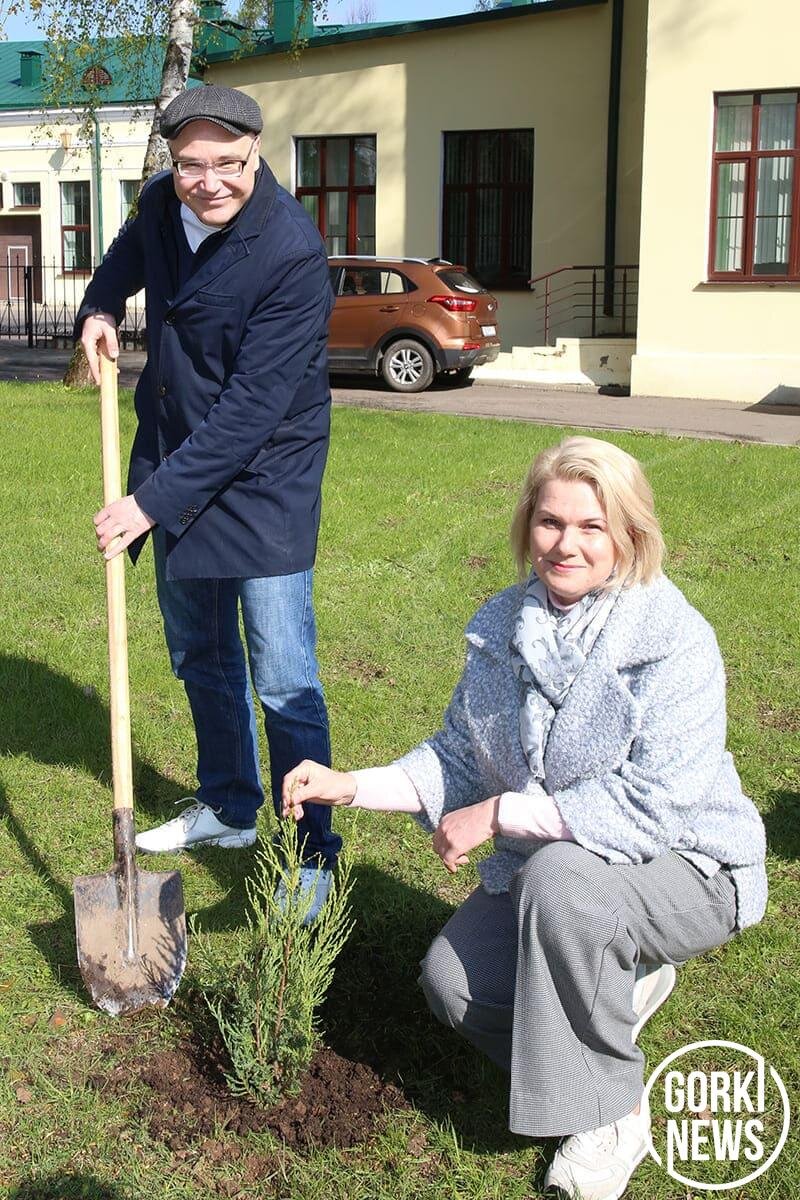 Первое деревце туи на памятной аллее высадили ректор УО БГСХА Виталий Великанов и доктор экономических наук, профессор Московской сельхозакадемии Наталья Зарук.