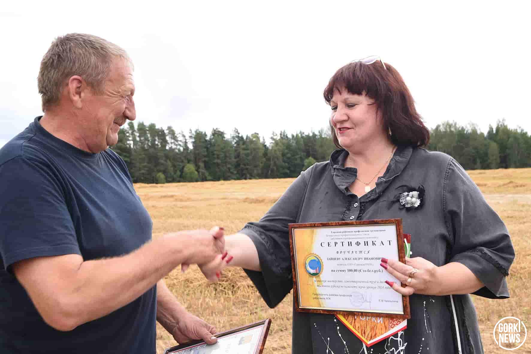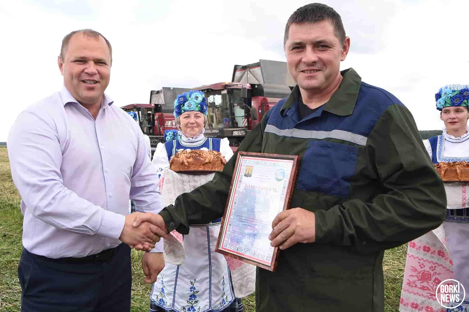Сегодня председатель райисполкома Михаил Гулый чествовал лучших комбайнеров и водителей, которые первыми в КСУП «Овсянка имени И.И.Мельника», ОАО «Племзавод имени Ленина», ОАО «Горецкая райагропромтехника» открыли счет второй тысяче тонн намолоченного и перевезенного зерна