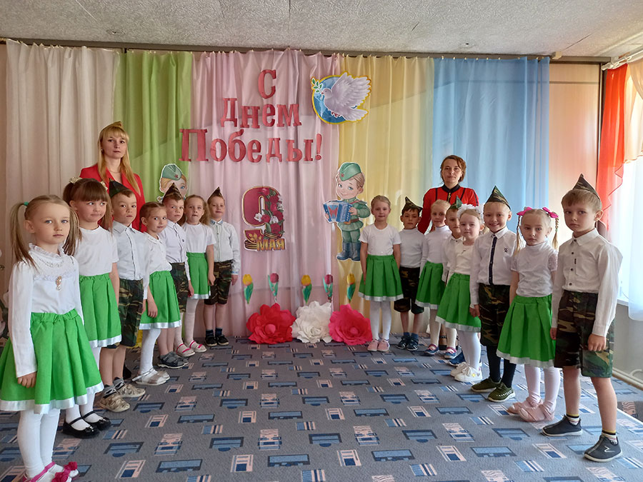 С целью расширения знаний у детей о Великой Отечественной Войне, о доблести, о подвигах, о славе наших воинов-освободителей, о том, какой ценой была завоевана победа, 6 мая с воспитанниками старших групп в ГУО «Ясли-сад «Сказка» г. Горки» прошло торжественное мероприятие, посвященное Дню Победы: дети рассказывали стихи о войне, пели песни, исполняли танцы, участвовали в военно-спортивных соревнованиях, почтили память погибших в ВОВ минутой молчания, возложили цветы к мемориалу «Скорбящая мать», участвовали в акции «Споем Катюшу вместе».