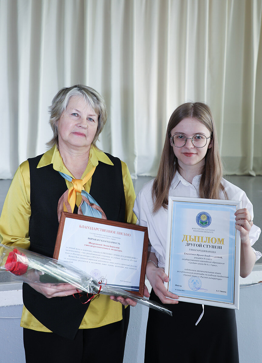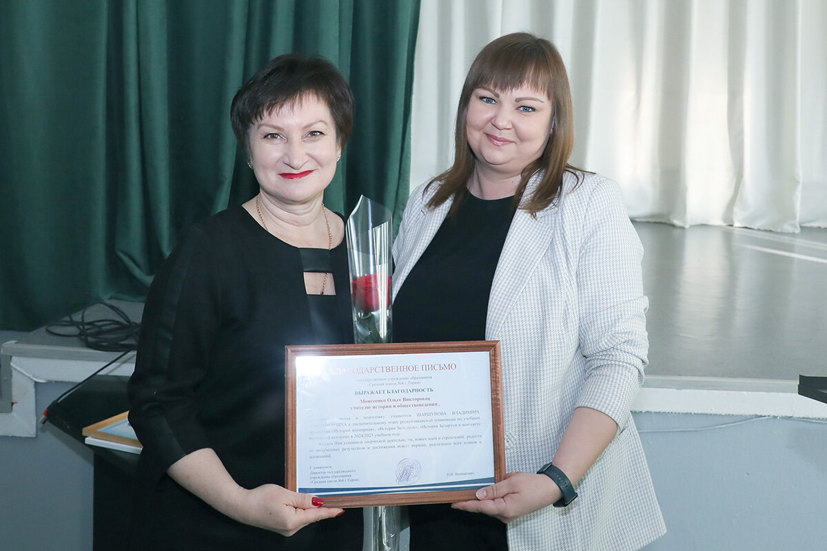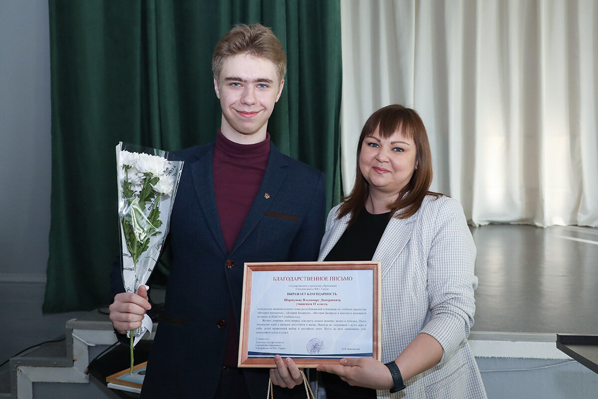 В этом году СШ № 4 является лидером по количеству дипломов, которые завоевали их ученики на заключительном этапе республиканской олимпиады. Из трех престижных наград в районе две принадлежат им. Ирина заняла второе место по русскому языку и литературе, а Владимир поднялся на третью ступеньку пьедестала почета по «Всемирной истории», «Истории Беларуси» и «Истории Беларуси в контексте мировой истории».