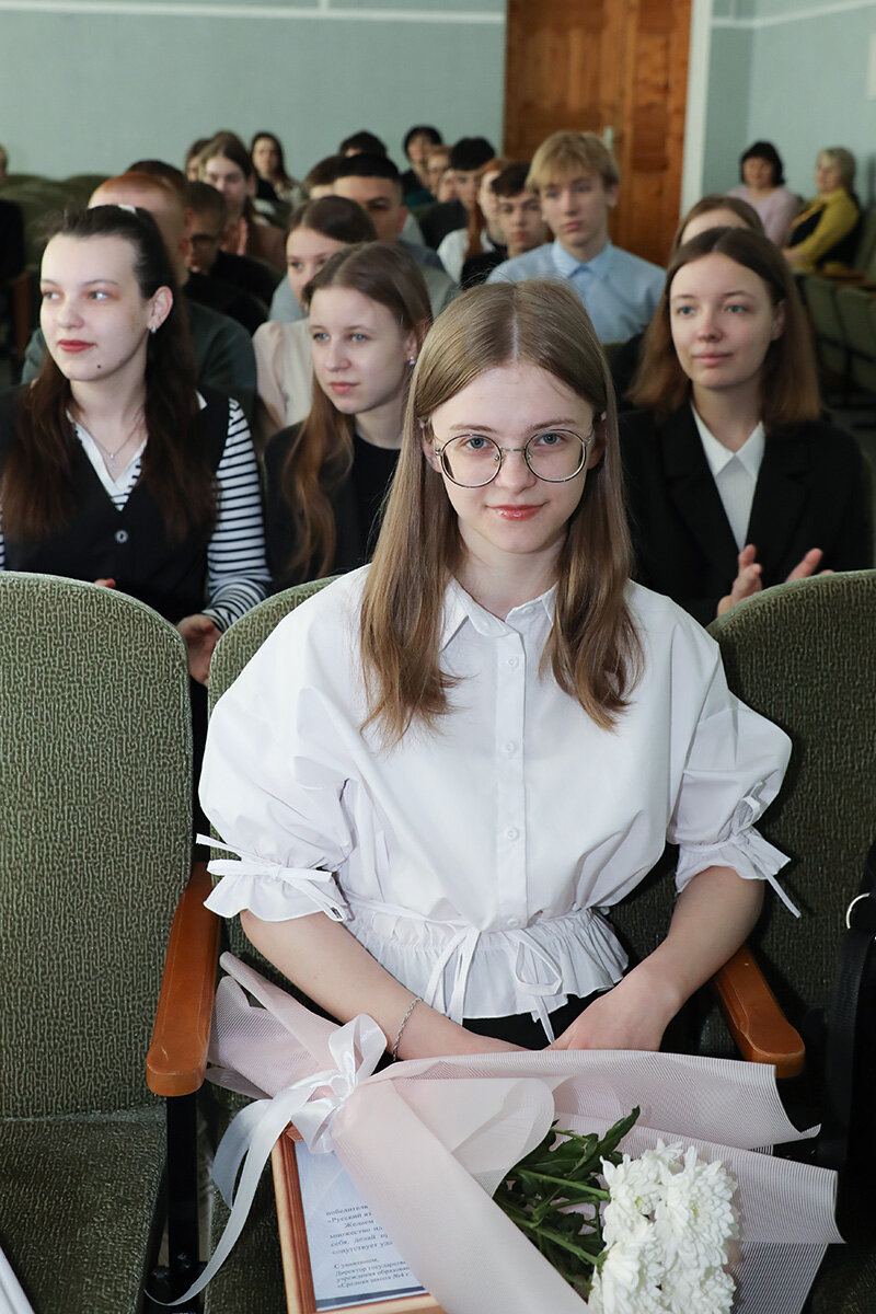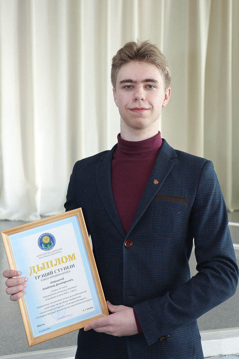 В актовом зале собрались ребята с 9 по 11 класс, которые приветствовали наших героев аплодисментами. К слову сказать, Дипломы на заключительном этапе республиканской олимпиады по учебным предметам предоставляют одиннадцатиклассникам право быть зачисленными в вузы без вступительных испытаний. Ирина и Владимир выбрали для поступления филологический и исторический факультеты самого престижного вуза страны – БГУ – и могут с гордостью назвать себя уже его первокурсниками. Они освобождены от сдачи ЦЭ и ЦТ.