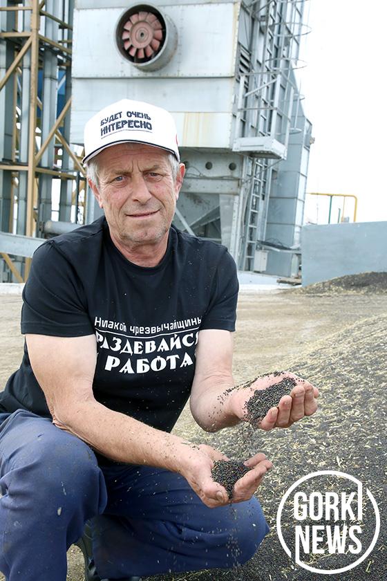 К уборочной кампании в хозяйстве подготовились основательно: на всех 11 комбайнах впервые установили системы GPS-навигации, позволяющие в онлайн-режиме контролировать движение и работу техники, объем сделанного и расход топлива. Нагрузка на один комбайн серьезная — 370 га. Предстоит убрать 3700 га зерновых и зернобобовых культур, не считая гречихи и проса. Директор участникам жатвы, комбайнерам, водителям, операторам зерносушильных комплексов, приготовил настоящий сюрприз. Из столичного магазина доставили 30 фирменных черных футболок и белых кепок мерча «Первого» с самыми популярными фразами Президента, которые, по мнению Василия Витюнова, метко отражают суть уборочной кампании. «В жатве нет никакой чрезвычайщины. Надо раздеваться и, действительно, усердно работать. Каждый делает свое дело. Есть условия трудового соревнования, которые хорошо мотивируют на высокую производительность. Всегда интересно посмотреть на результаты коллег, равняться на лучших и стремиться их превзойти», — так объяснил Василий Владимирович свой выбор футболок и кепок, которые стали отличным добавлением к специальной одежде и обуви.