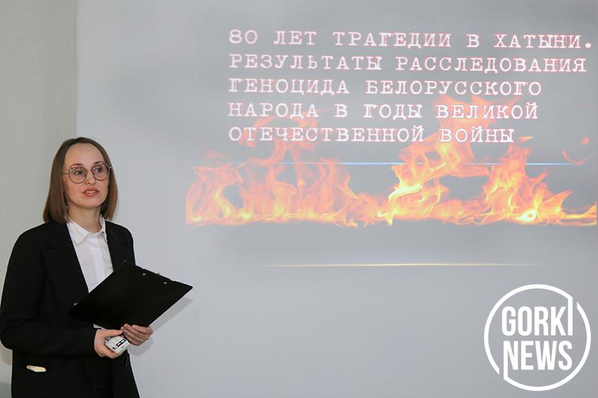 В начале мероприятия его участники вспомнили о трагедии в Хатыни, которая произошла 80 лет назад. О тех страшных событиях рассказала председатель РО РОО «Знание» Елена Карачевская. Обсудили важность сохранения исторической памяти.
