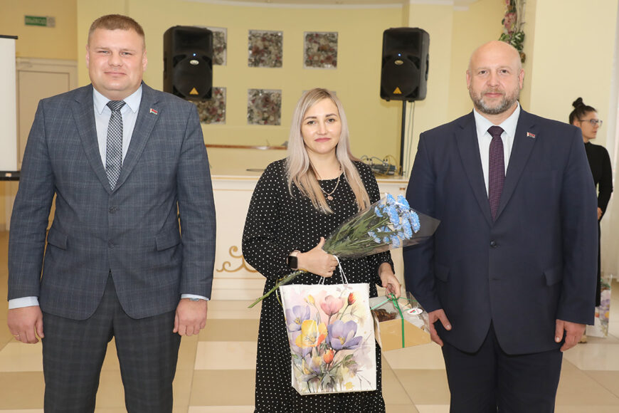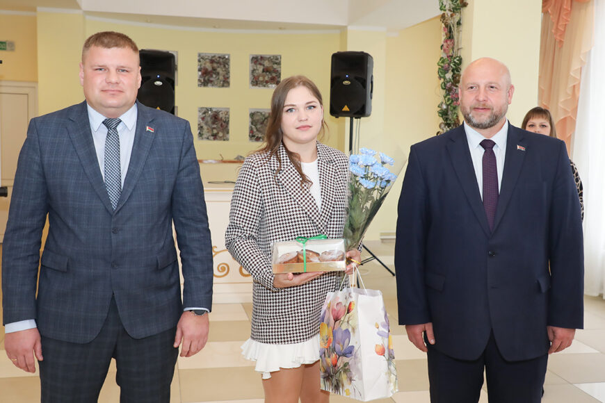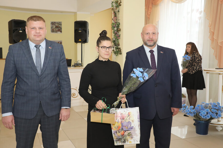 Глава района Николай Орлёнок и председатель районного Совета депутатов Максим Потапенко чествовали женщин, которые родили третьего ребенка и стали многодетными. В этом году родили третьего ребенка и стали многодетными мамами Виктория Кулешова, Алеся Северцева, Кристина Тарасенко, Анастасия Петрусенко, Юлия Бадерко, Ксения Терешонкова, Ольга Ничипорова.
