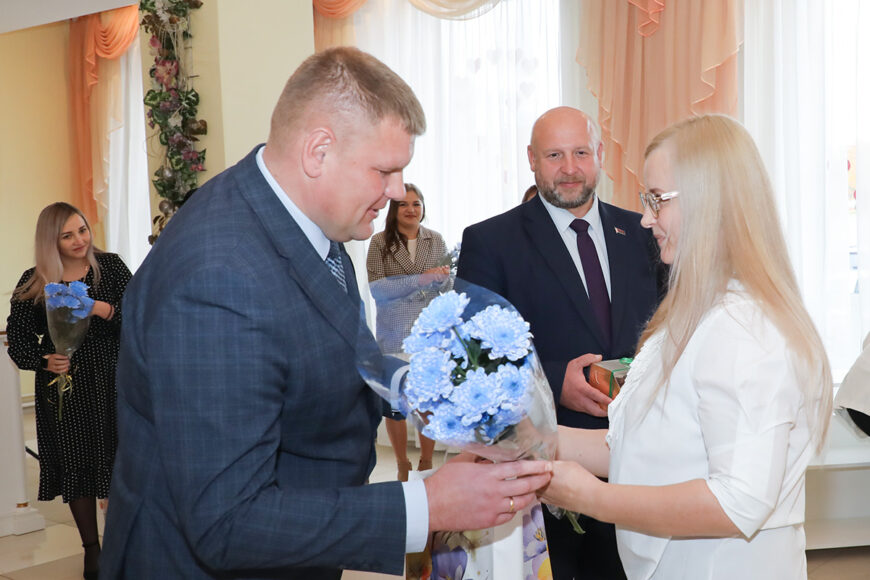 Председатель райисполкома Николай Орлёнок тепло поздравил матерей с получением почетного статуса многодетных и пожелал не останавливаться на достигнутом количестве детей: «Мама – это первое слово ребенка. Вы даете самое главное – жизнь, связываете поколения. Вы молодые и красивые. Желаю вам здоровья, чтобы ваши детки всегда радовали своими успехами и стали достойными гражданами нашей прекрасной страны».
