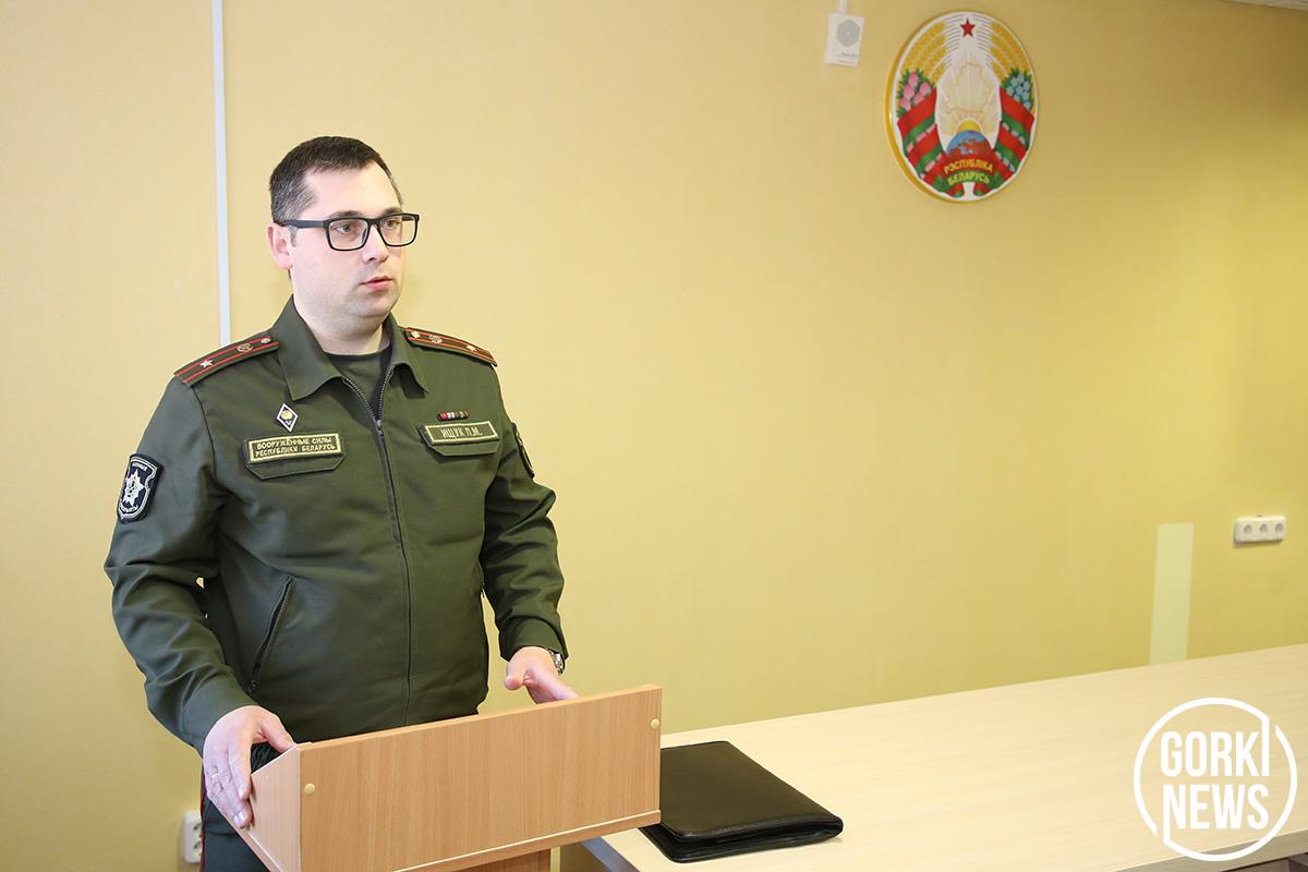 Начальник группы призыва на военную службу военного комиссариата Горецкого и Дрибинского районов прокомментировал новшества Военной доктрины, касающейся каждого человека, подчеркнув, что наша страна не собирается ни с кем воевать и все возможное делает для того, чтобы не допустить военных конфликтов. Напомнил высказывание Главы государства: «Хочешь мира – готовься к войне». Рассказал о главных задачах срочной военной службы и проводимых учениях, цель которых – научить граждан в случае необходимости защищать свое Отечество.