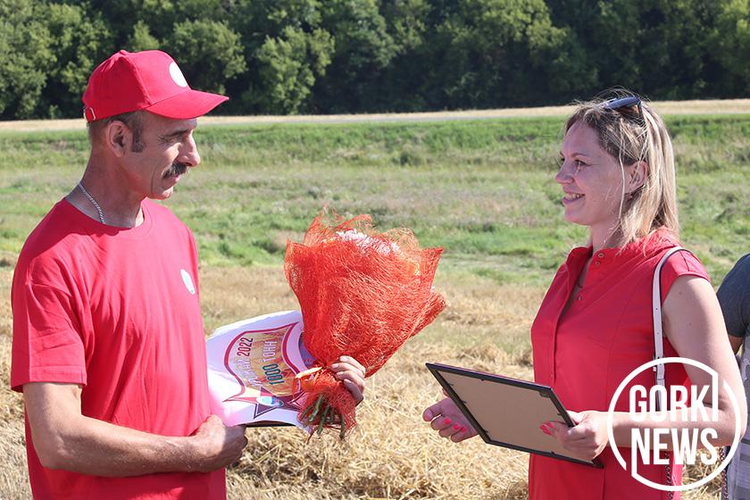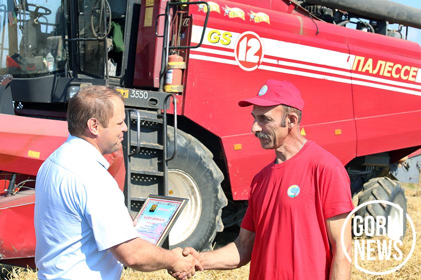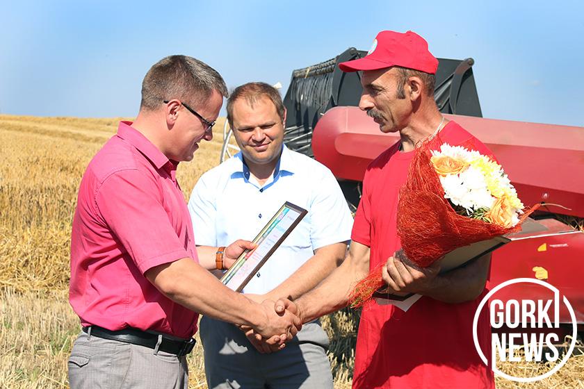 Лидера жатвы поздравили глава района Михаил Гулый, директор сельхозпредприятия Александр Янкович, лидеры районного объединения профсоюзов Марина Бандык и РК профсоюза работников АПК Елена Чаплыгина.