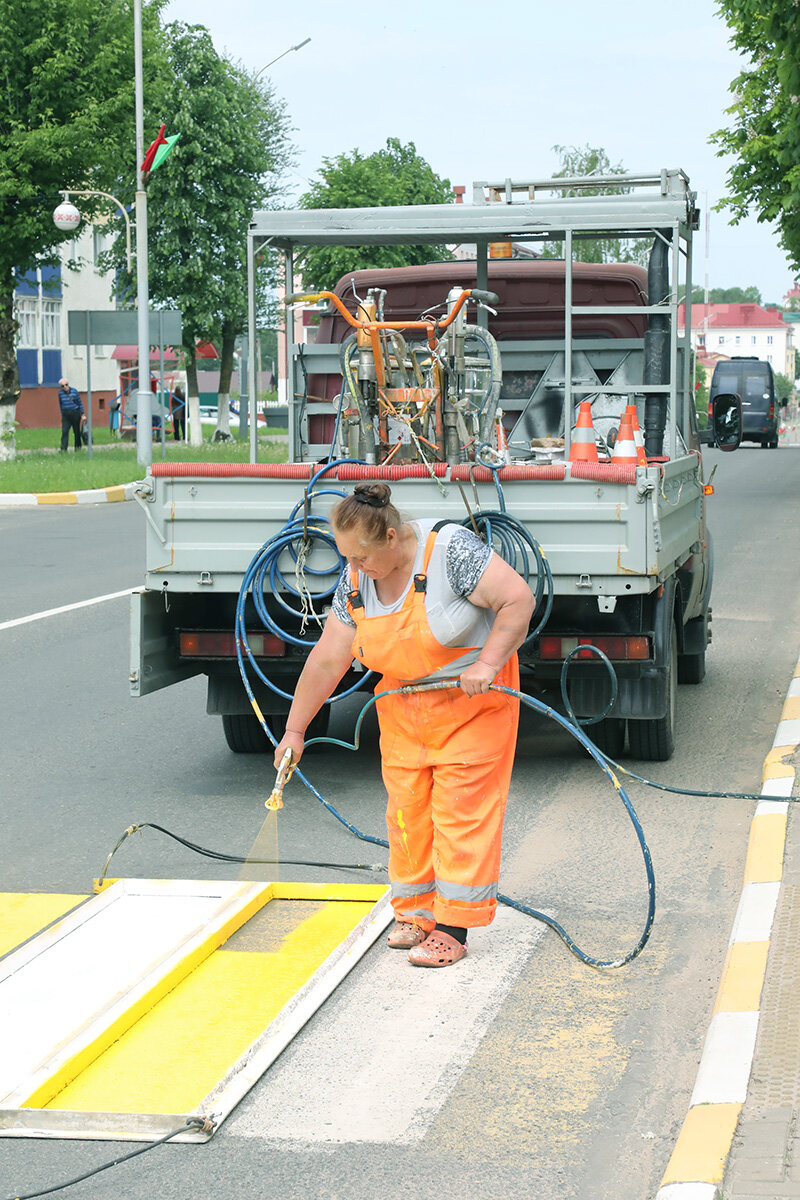 – Процесс не из легких. Занимает немало времени, – отметила Александра Соболькова после завершения работ на очередной «зебре» вблизи кинотеатра «Крынiца». – Некоторые хотят, чтобы мы делали быстрее. А так не выходит. Ведь мы выполняем весь процесс качественно, по технологии в одном и том же ритме. Наша задача не просто сделать работу, а чтобы разметка дольше держалась и послужила населению.