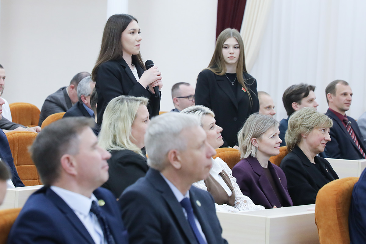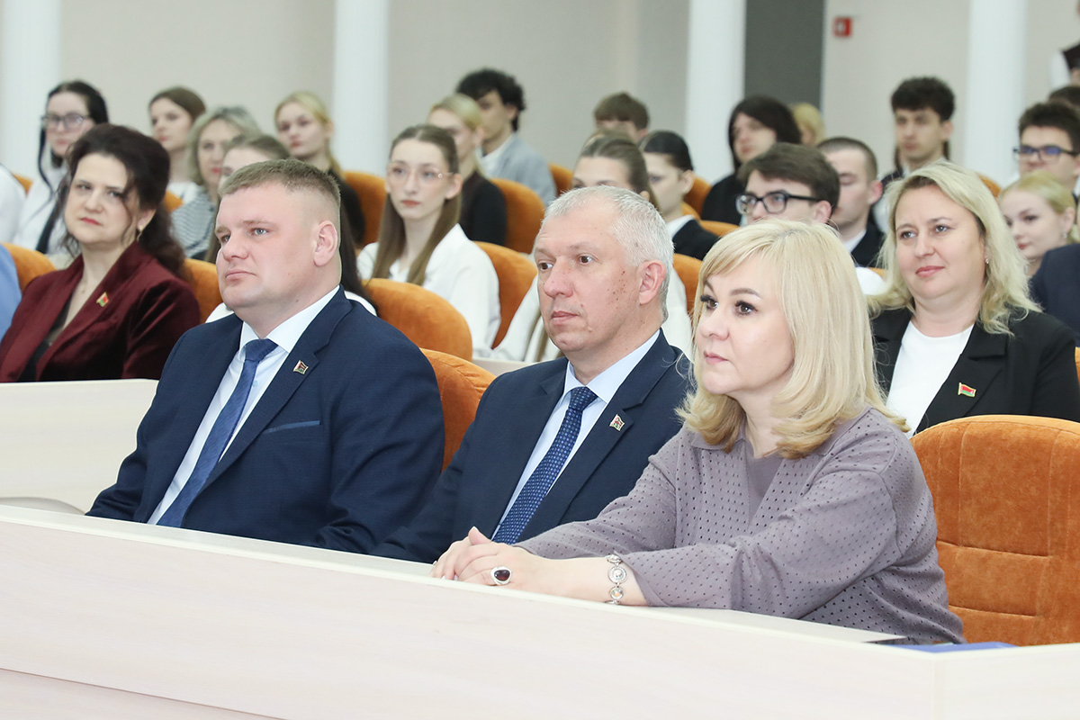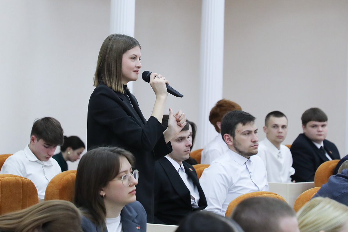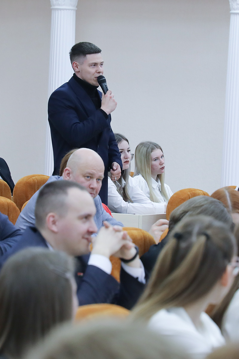 Заместитель Главы Администрации Президента Республики Беларусь акцентировал внимание на актуальных вопросах и проблемах, которые сейчас будоражат сознание не только студенческой молодежи, людей среднего возраста, но и старшего поколения, а также тех, кто не погружен в информационную ленту и не пристально следит за политикой. Владимир Борисович подчеркнул, что в конференц-зале собрались грамотные и подкованные люди, которые понимают, что в ближайшее десятилетие особой ценностью в первой тройке будут чистая вода, энергия и продукты питания, без чего не может жить человек. Была затронута лживая идеология Запада, который хочет, чтобы другие страны не развивались и потеряли свою самостоятельность, вводят необоснованные санкции и сносят популярные государственные белорусские медиаплощадки, к которым были прикованы взгляды не только наших граждан, но зрители мирового сообщества.