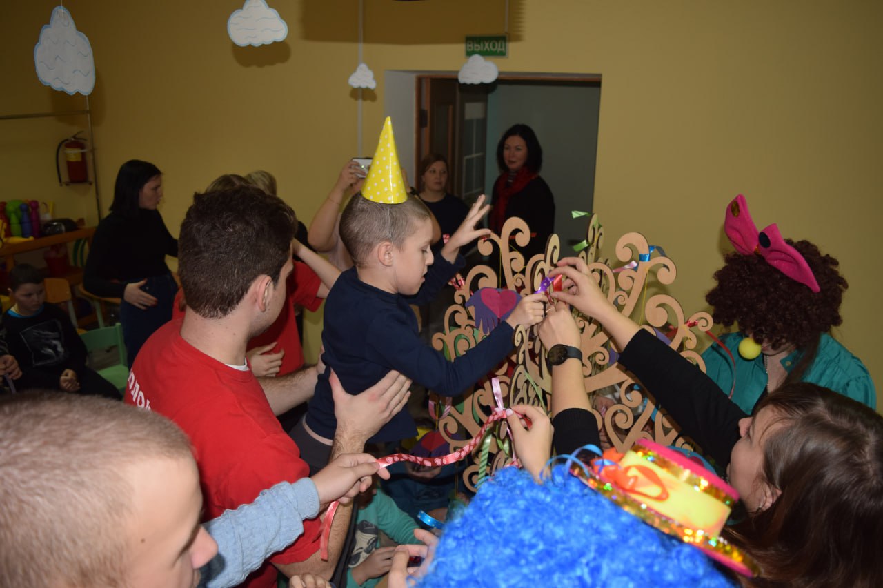 Волонтеры подготовили игровую программу с участием клоунов Бима и Бома. Дети и волонтеры вместе играли, рисовали, танцевали. В процессе взаимодействия ребята нашли контакт друг с другом и общий язык. В программе были игры с воздушными шарами, мыльными пузырями, игры на повторение движений, жестов и мимики.
