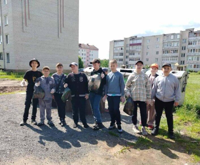 Воспитанники воспитательно-оздоровительного лагеря «Позитив» ГУО «Гимназия № 1» приняли участие в акции по благоустройству родного города