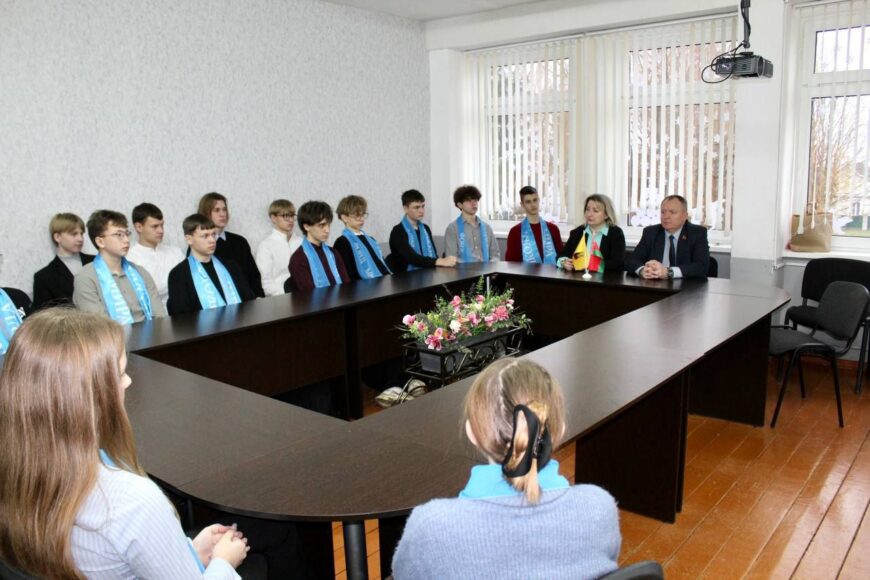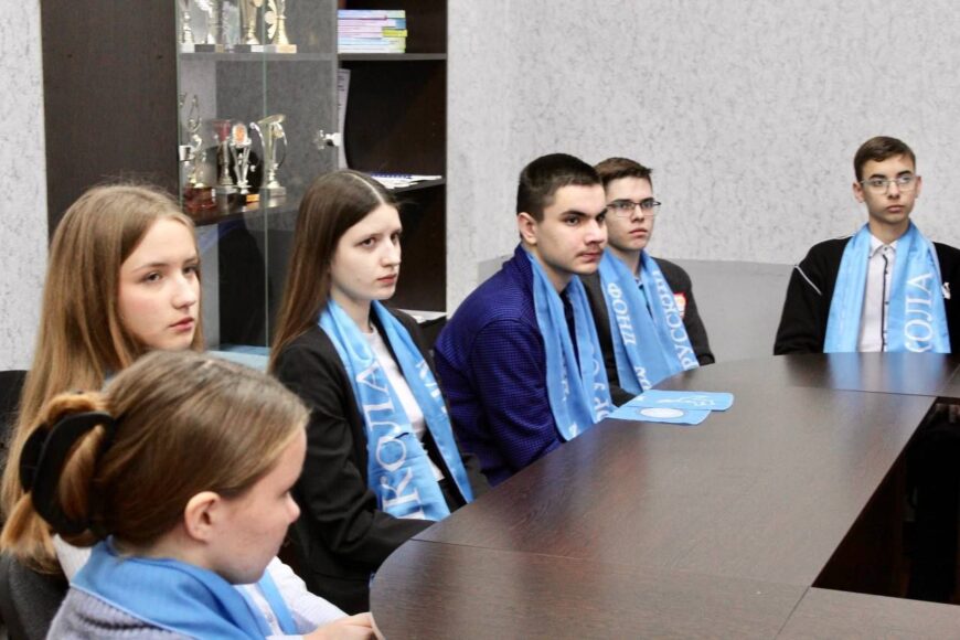 В рамках встречи юных миротворцев с директором гимназии Сергеем Прудниковым и руководителем по военно-патриотическому воспитанию Вячеславом Шипиным обсуждались вопросы роли молодежи в противодействии фашизму, необходимости гражданской ответственности и сохранения памяти о трагических страницах истории.