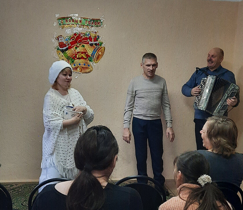 С песнями, играми, конкурсами состоялась праздничная театрализованная программа «В снежном царстве, в морозном государстве» в клубе «Теплый дом» отделения социальной реабилитации, абилитации инвалидов Горецкого районного центра социального обслуживания населения. А сколько радости доставил всем присутствующим приход главных героев: Деда Мороза и Снегурочки! Не прошел стороной и заглянул в центр Дракоша — символ наступающего года. Гости пожелали всем счастья, здоровья и успехов в новом году, вручили подарки и пригласили на сладкий стол, который был организован благодаря спонсорской помощи директора ООО «ЭльДива» Ивана Осипова.