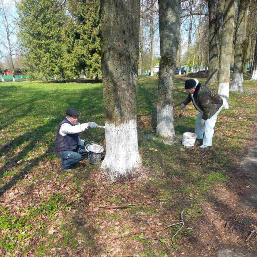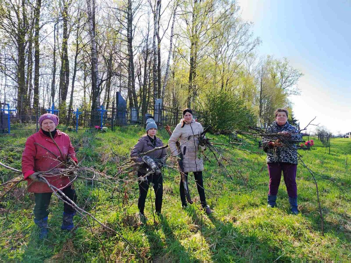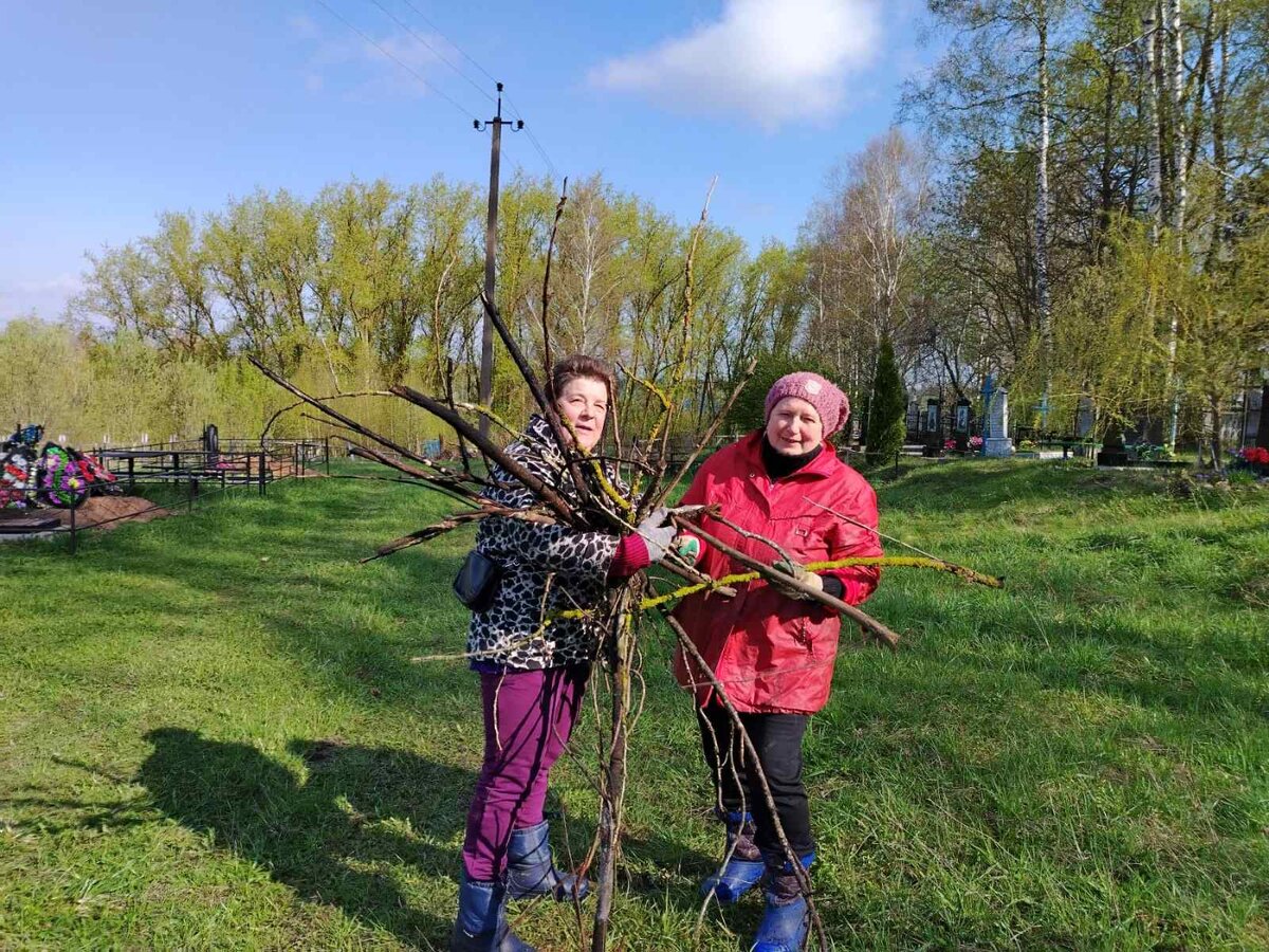 Представители трудовых коллективов, местной власти, депутаты, школьники наводили порядок на территориях агрогородка Горы, гражданского кладбища, у памятника воинам-освободителям, землякам, мирным гражданам, погибшим в годы Великой Отечественной войны, высаживали маленькие елочки, белили деревья.